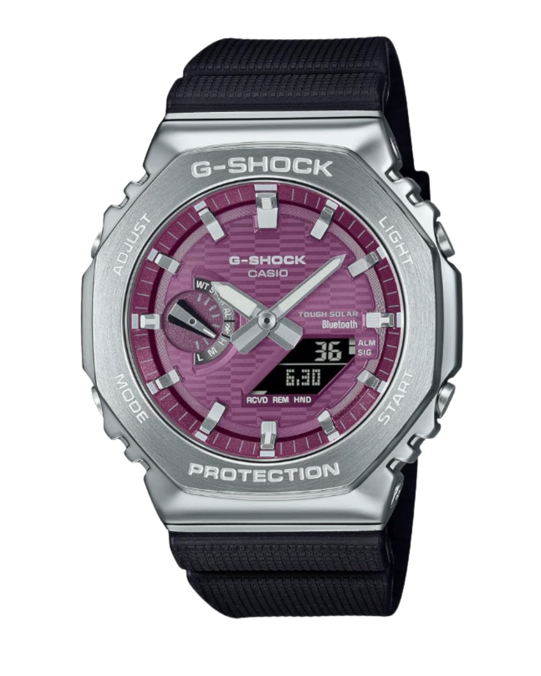 Erleben Sie die perfekte Symbiose aus dem ikonischen achteckigen G-SHOCK Design und zukunftsweisender Funktionalität. Die GBM-2100A-4BER beeindruckt durch eine edle Edelstahl-Lünette kombiniert mit einem markanten weinroten Zifferblatt in Sunray-Optik.