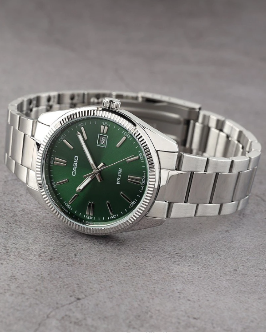 Casio MTP-1302PD-3AVEF – Klassische Edelstahl-Uhr mit grünem Zifferblatt