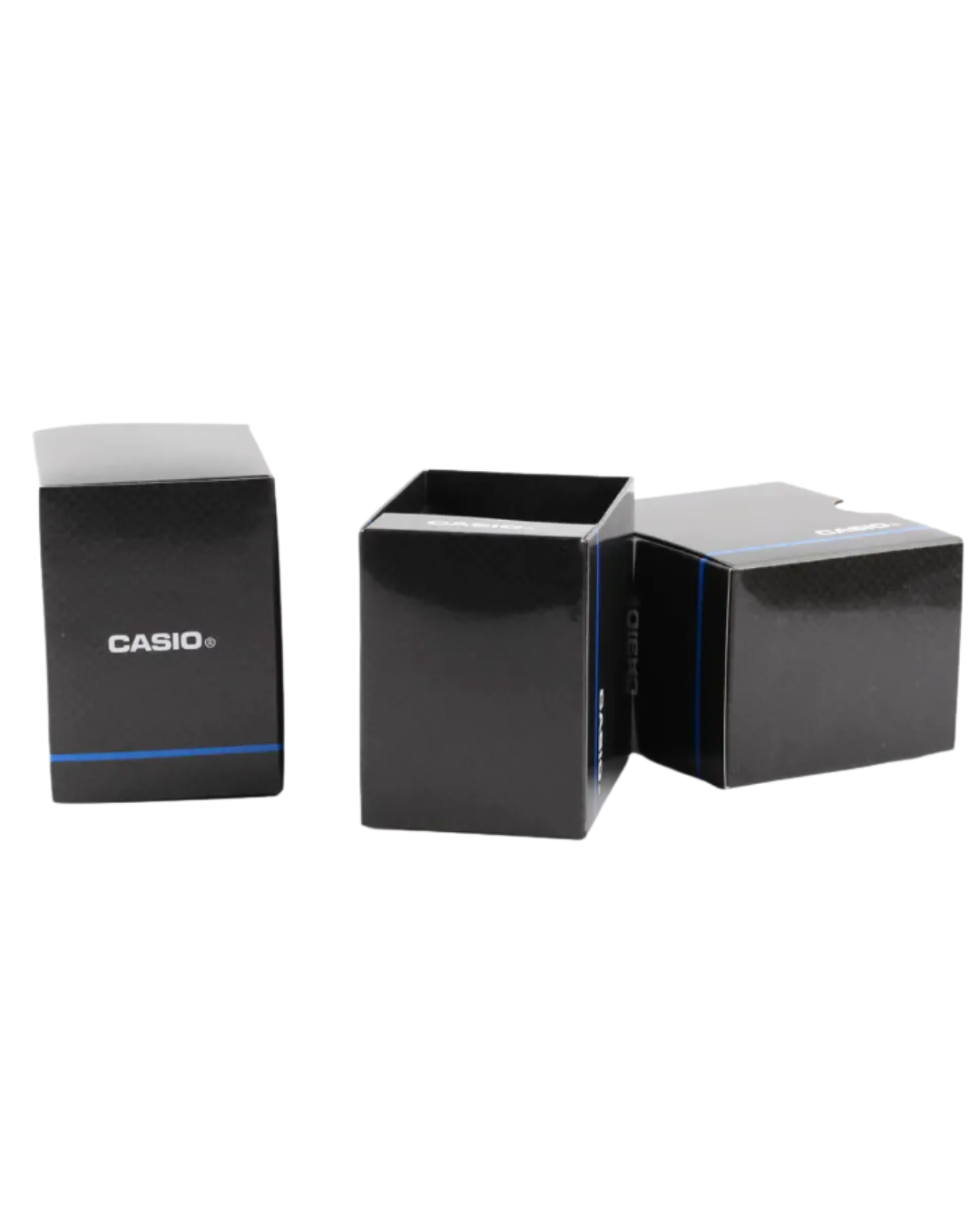 Im Inneren arbeitet ein präzises Casio Quarzwerk mit zentraler Stunden-, Minuten- und Sekundenanzeige. Auf der Position 3 Uhr befindet sich ein gut ablesbares Datumsfenster, das den Alltag der Trägerin oder des Trägers erleichtert. Die Stromversorgung erfolgt über eine langlebige Knopfzellenbatterie mit einer erwarteten Laufzeit von bis zu 3 Jahren (je nach Nutzung).