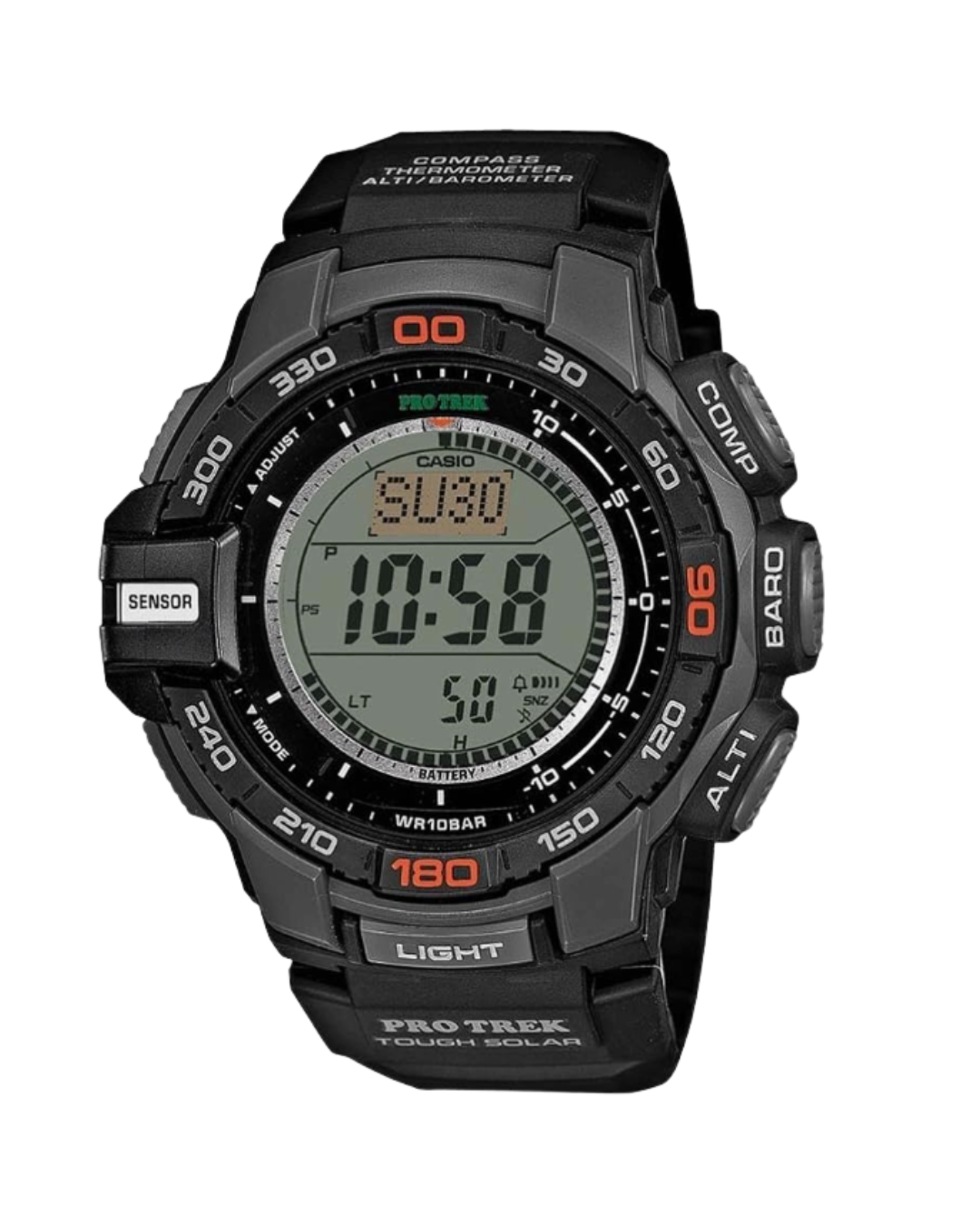 Die Casio Pro Trek PRG-270-1ER ist die ideale Wahl für Bergsportler, Wanderer und Outdoor-Enthusiasten. Ausgestattet mit der innovativen Triple Sensor Technologie (Version 3), liefert diese Uhr präzise Daten zu Himmelsrichtung, Luftdruck, Höhe und Temperatur direkt an Ihr Handgelenk.
