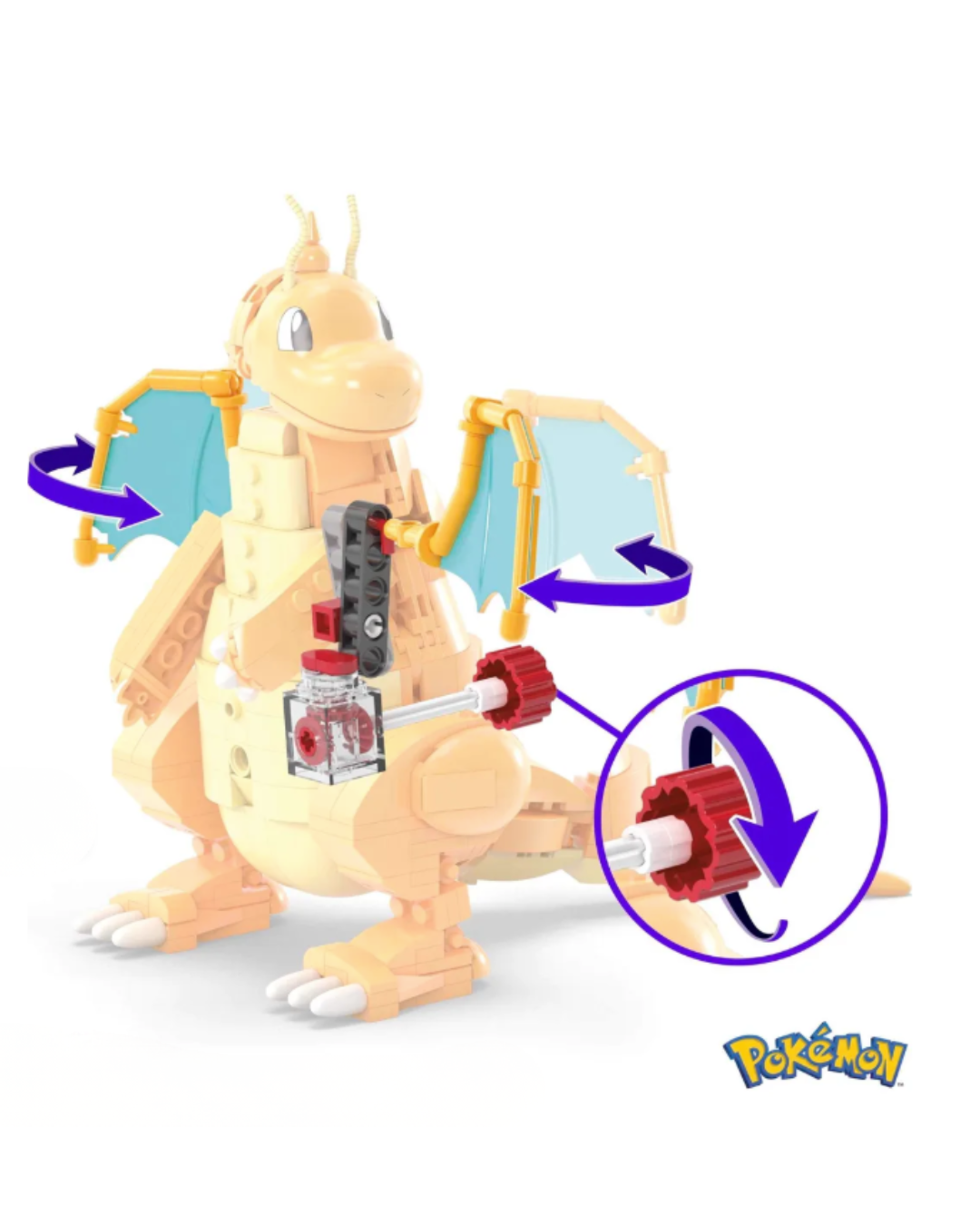 Das Highlight dieses 387-teiligen Sets ist der innovative Bewegungsstein. Sobald Dragoran fertig aufgebaut ist, lässt sich durch einfaches Drehen an der integrierten Kurbel ein Mechanismus aktivieren, der die Flügel des Pokémon realistisch schlagen lässt. Die Figur ist zudem voll artikuliert und kann in zahlreiche imposante Posen gebracht werden, was sie sowohl zum idealen Spielzeug als auch zum beeindruckenden Ausstellungsstück für Sammler macht.