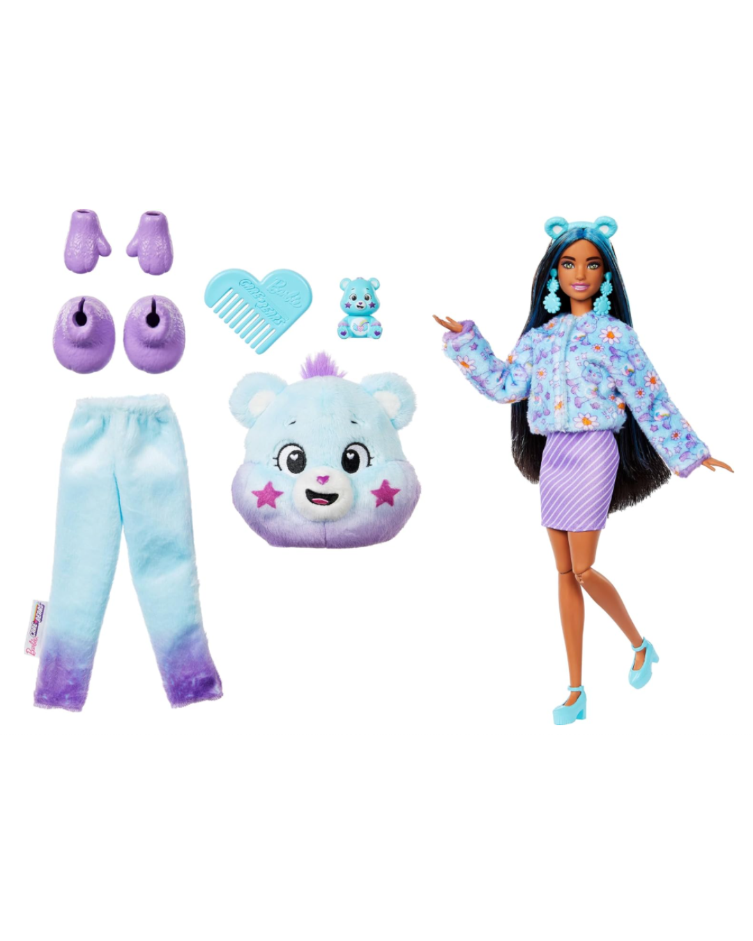 Lieferumfang Puppe, Plüschkostüm, Outfit-Teile, Kamm, Mini-Bär, Zubehör (insgesamt 10 Überraschungen)