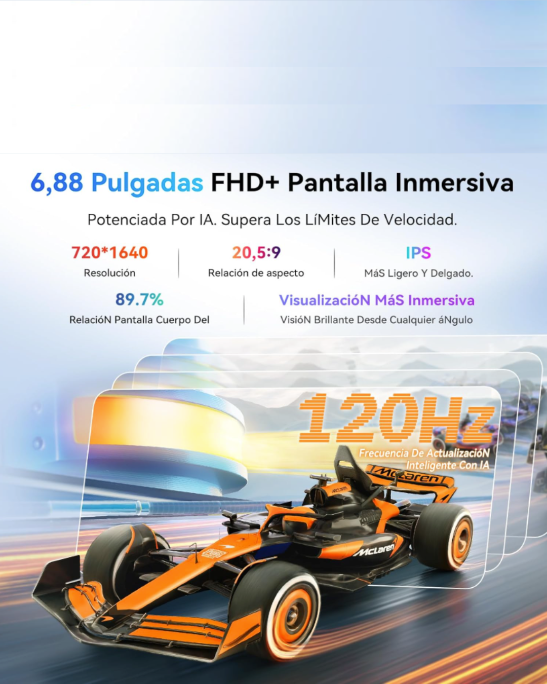 Display 6,88 Zoll HD+ (720×1640), 120Hz adaptive Rate