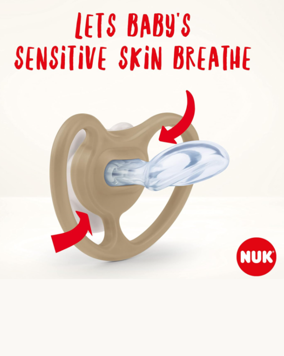| Besondere Merkmale | Extra große Luftöffnungen, kiefergerechte Form, NUK Air System, hohe Babyakzeptanz |