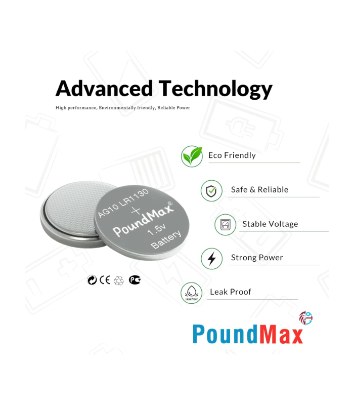 • PoundMax Knopfzelle LR1130, 1.5 V, Alkaline, 20 Stück